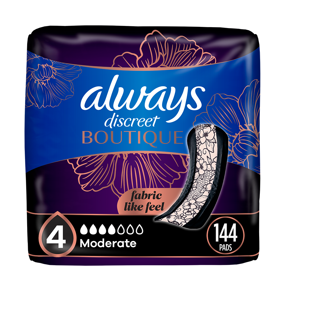 Avec Always Discreet Boutique, les fuites urinaires ne vous empêchent pas de vous sentir mieux. Découvrez une incroyable protection contre les fuites urinaires qui ressemble à vos culottes préférées, grâce à son matériau semblable à du tissu. La conception ajustée épouse vos courbes avec un tissu doux et soyeux pour que vous puissiez marcher avec assurance et confiance lorsque vous portez les protège-dessous d’incontinence et post-partum Always Discreet Boutique. C’est le look délicat et à peine perceptible que vous voulez, associé à la protection antifuite que vous méritez. Un noyau caché transforme le liquide en gel et emprisonne l’humidité, pour que vous vous sentiez frais et en sécurité pendant des heures. La technologie OdorLock, légèrement parfumée, neutralise les odeurs instantanément et en continu pour que vous restiez fraîche toute la journée. Always Discreet Boutique vous permet de marcher avec assurance et évite les fuites urinaires. Ne laissez pas les fuites gêner votre journée, trouvez simplement votre bonne taille avec le tableau Always Discreet My Fit et obtenez la protection sur laquelle vous pouvez compter. Vous serez sûre d’obtenir la protection que vous méritez avec les serviettes d’incontinence Always Discreet Boutique pour femmes.