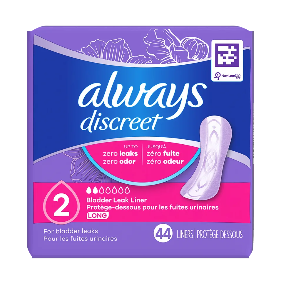 Les protège-dessous Always Discreet ont un parfum léger et frais et ont été testés dermatologiquement. Ils utilisent la technologie exclusive OdorLock pour neutraliser les odeurs d’urine instantanément et en continu plutôt que de simplement couvrir les odeurs.